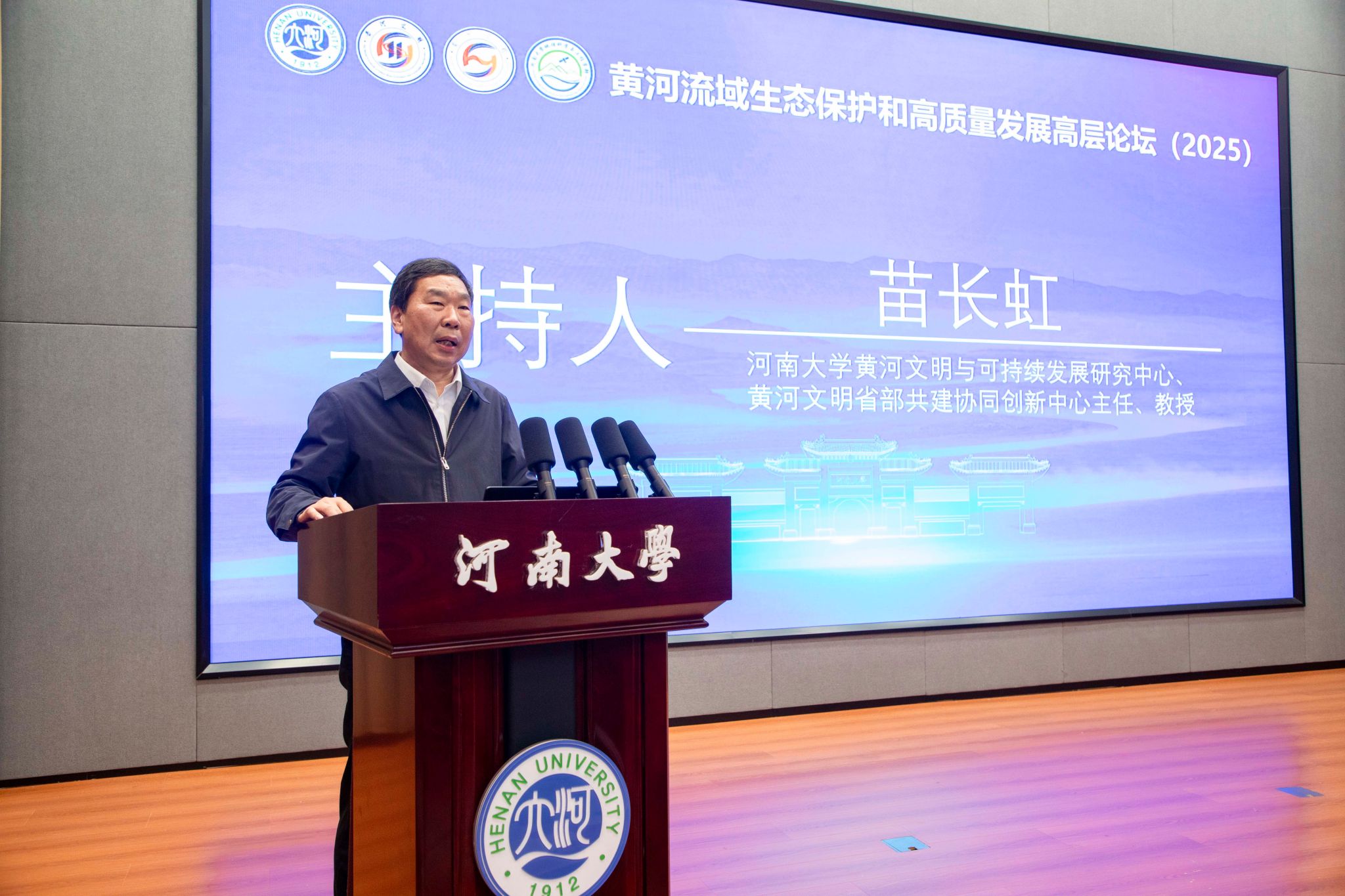 2025年9月27日,黄河流域生态保护和高质量发展高层论坛(2025)在河南大学郑州校区举办,论坛由教育部人文社科重点研究基地河南大学黄河文明与可持续发展研究中心(以下简称“黄河文明中心”)、黄河文明省部共建协同创新中心和河南大学地理科学与工程学部联合主办,河南大学应对气候变化与碳中和实验室及国家乡村振兴(兰考)研究院承办。来自中国科学院地理科学与资源研究所、北京大学、浙江大学、复旦大学、武汉大学、南开大学、华东师范大学、香港大学、南京理工大学、暨南大学、广州大学、河南省城乡规划设计研究院等高校科研院所及管理部门的专家学者与河南大学师生100余人参加本次论坛,河南广播电视台对论坛进行实时图片直播。论坛主题为“推进城市高质量发展”,分为开幕式、论坛主旨报告及圆桌论坛。开幕式由河南大学黄河文明中心、黄河文明省部共建协同创新中心主任苗长虹教授主持。