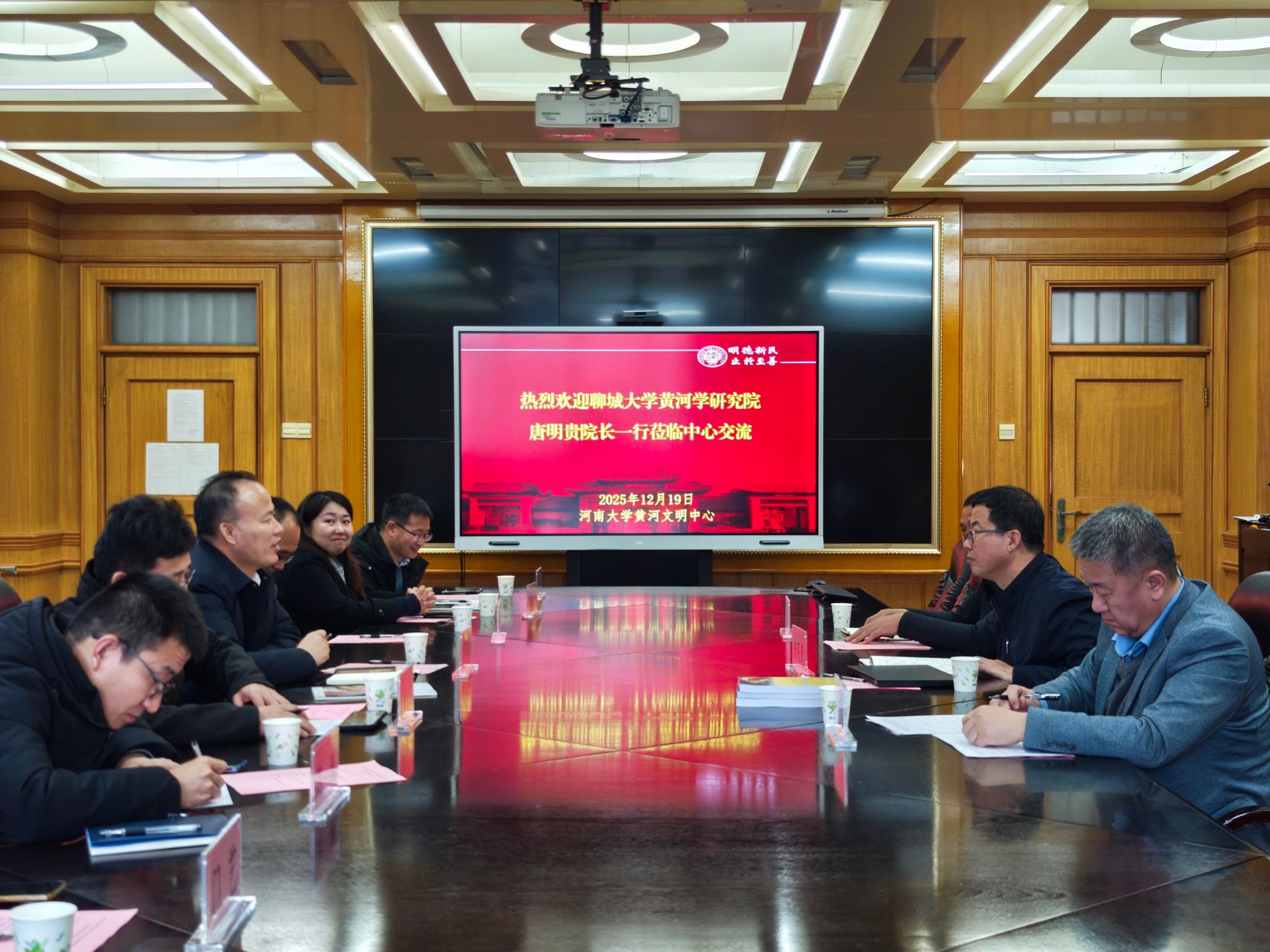 12月19日,聊城市政协副主席,聊城大学黄河学研究院院长、聊城大学季羡林学院院长唐明贵一行3人,莅临河南大学黄河文明与可持续发展研究中心开展交流访问。双方在明伦校区新行政楼308会议室举行座谈会,中心副主任田志光、中心相关研究所所长、师生代表出席会议,座谈会由历史地理与社会变迁研究所所长吴朋飞主持。