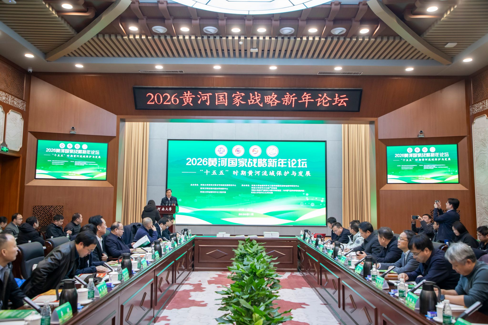 1月17日上午,2026黄河国家战略新年论坛在河南大学郑州校区举行,论坛由河南大学黄河文明与可持续发展研究中心、黄河文明省部共建协同创新中心与地理科学与工程学部联合主办,地理科学与工程学部国家战略地理学研究中心、黄河文化遗产实验室、应对气候变化与碳中和实验室及黄河文化研究院共同承办。来自中国科学院、黄河水利科学研究院、沿黄九省区高校地理学院相关领导、专家及研究生100余人现场参会。本届论坛主题为“‘十五五’时期黄河流域保护与发展”。