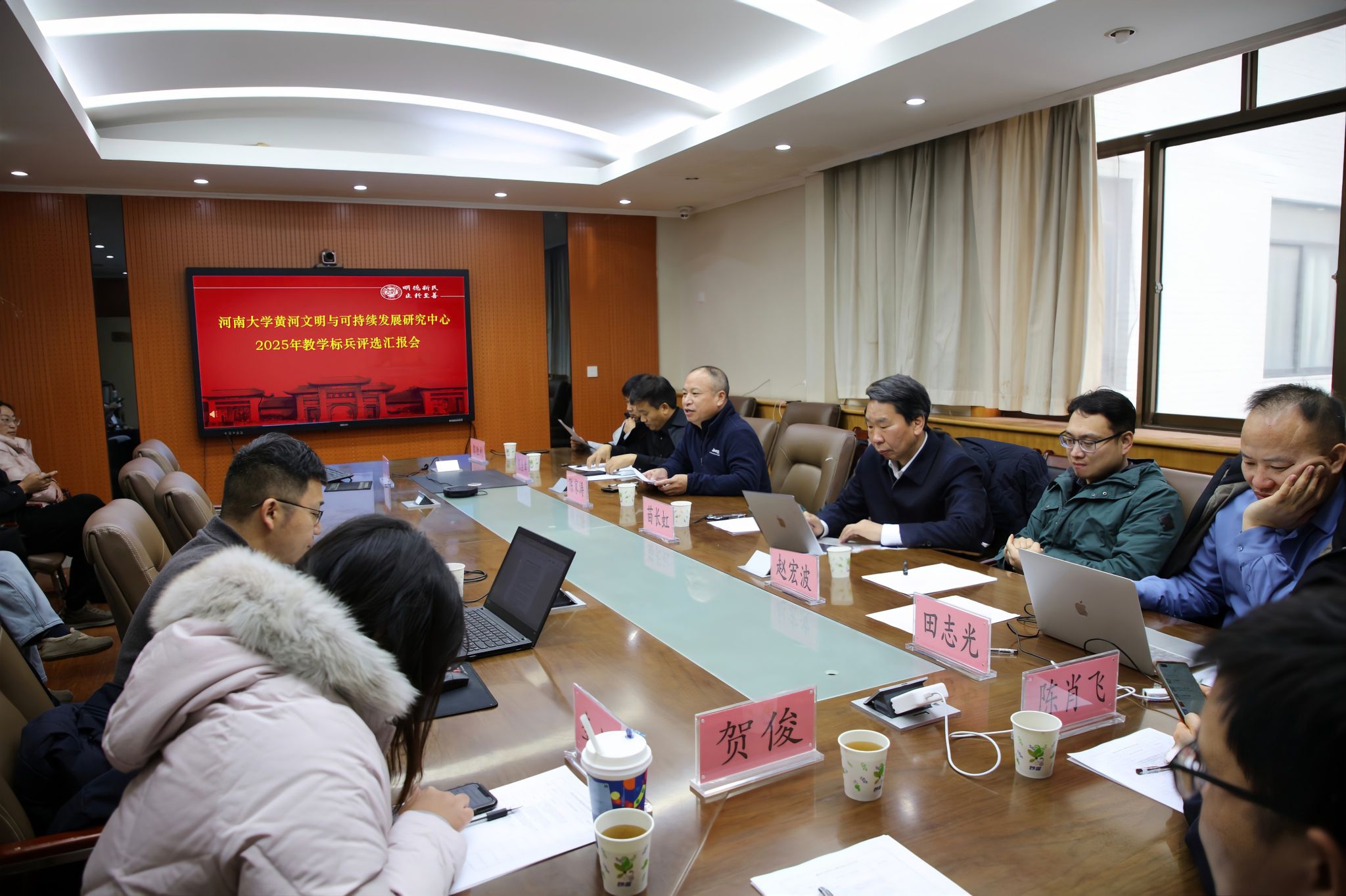 为充分发挥教学骨干的示范引领与激励带动作用,以评选促提升、以标杆引方向,持续深化教育教学改革,稳步提升人才培养质量,1月22日,河南大学黄河文明与可持续发展研究中心(以下简称“中心”)在明伦校区新行政楼316会议室隆重举行2025年度教学标兵评选汇报会。中心相关领导、评委专家及各专业教师代表齐聚现场,共同参与评选工作。会议由中心副主任陈家涛主持。