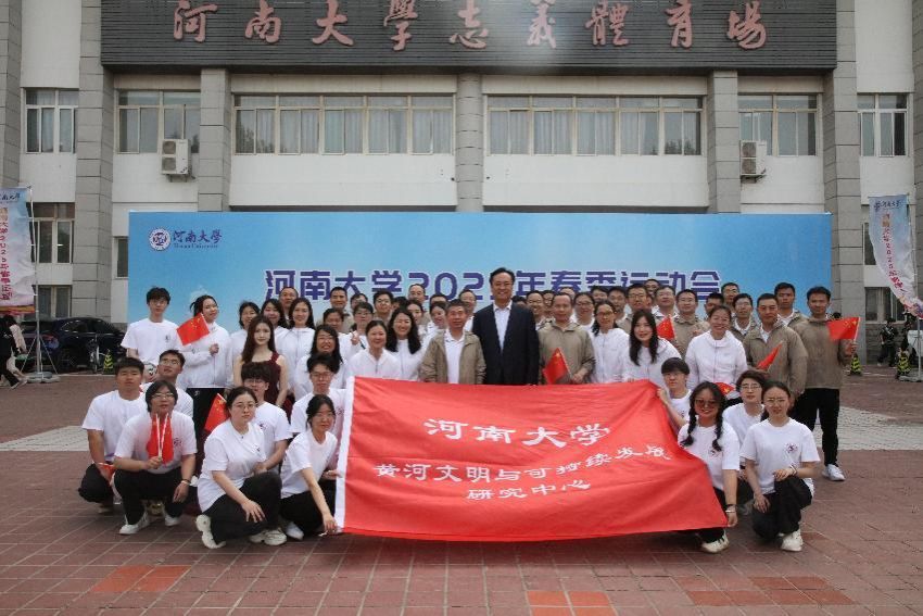 春风拂面,红旗飘扬,校园内洋溢着青春的活力与激情。4月16日至18日,河南大学 2025 年春季运动会在金明校区志义体育场隆重举行。校领导张锁江、杨萌芽、杨朝阳、张礼刚,学术副校长崔大祥、海霞出席了本次运动会开幕式,开幕式由副校长、体委主任苗雨晨主持。黄河文明与可持续发展研究中心(以下简称“中心”)教职工及 2024 级研究生积极参加了此次运动会,并凭借全体成员的出色发挥,荣获“优秀组织奖”,为本次运动会交上了一份圆满的答卷。