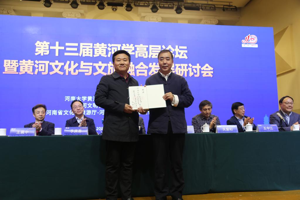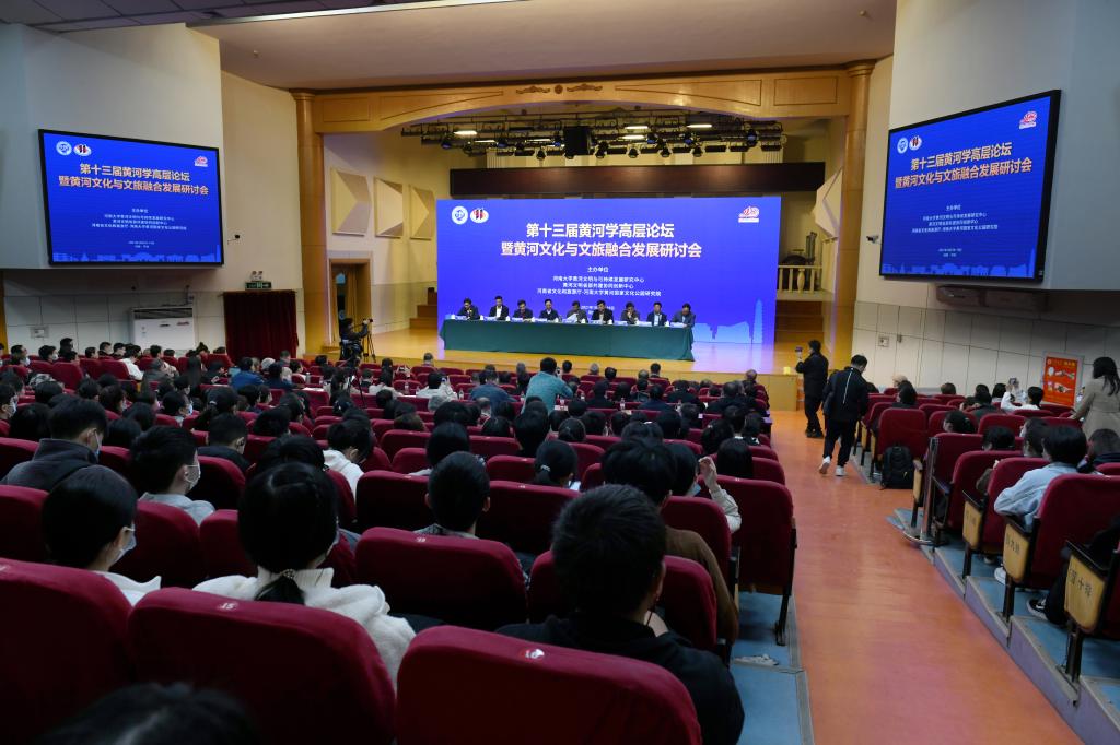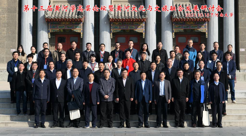 在习近平总书记在黄河流域生态保护和高质量发展座谈会上的讲话发表两周年、中共中央、国务院印发《黄河流域生态保护和高质量发展规划纲要》之际,2021年10月18日-19日,第十三届“黄河学”高层论坛暨黄河文化与文旅融合发展研讨会在河南大学明伦校区隆重举行。本次研讨会由教育部人文社科重点研究基地河南大学黄河文明与可持续发展研究中心、黄河文明省部共建协同创新中心、河南省文化和旅游厅-河南大学黄河国家文化公园研究院主办,旨在推进黄河文化遗产的系统保护,深入挖掘黄河文化蕴含的时代价值,建设具有国际影响力的黄河文化旅游带,推动中国特色的学科体系、学术体系和话语体系构建。来自中国社会科学院、中国旅游研究院、河南省社会科学界联合会、河南省社会科学院、河南省文学院、河南省文物考古研究院、河北省文物考古研究院、北京大学、武汉大学、中国海洋大学、山东大学、中山大学、陕西师范大学、郑州大学、首都师范大学、河南大学、河南财经政法大学、华中师范大学、华南师范大学、天津师范大学、山东师范大学、西北师范大学、信阳师范学院北京第二外语学院以及地方政府、企事业单位、相关媒体等近30家单位近100余位代表和嘉宾现场参会,黄河文明与可持续发展研究中心以及校内相关学院300余名师生参加论坛。