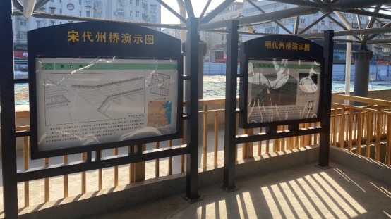 实验班师生们首先来到位于今天开封市中山路与自由路交叉口南50米的州桥遗址考古现场,考古工地负责人伦凤军就州桥遗址的历史沿革、考古工作进展及未来规划等方面为大家进行了详细介绍。州桥遗址,又名汴州桥,始建于唐代建中年间(780—783年),后经五代、宋、金、元、明,开封城市中轴线跨越隋唐大运河的地标性建筑,也是大运河汴河段上一座重要的古桥梁。“州桥明月”曾是著名汴京八景之一,1642年州桥被黄河泛滥泥沙淤埋,1984年被偶然发现。2018年10月,在发掘各方面条件完善后,汴河遗址考古发掘工作正式启动。